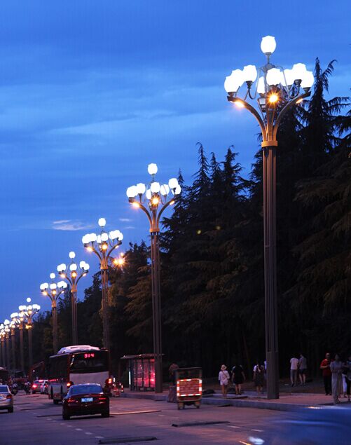 芙蓉中華燈,將成都市市花——芙蓉文化元素,運用在多頭、植物造型燈桿的中華燈上,突破了傳統中華燈造型與照明功能不能兼顧的缺陷,實現了功能照明和景觀照明完美結合,整燈呈現大氣、穩重之感。波罩內為我公司專屬配置的芙蓉燈波罩光源,綠色照明,節能環保。